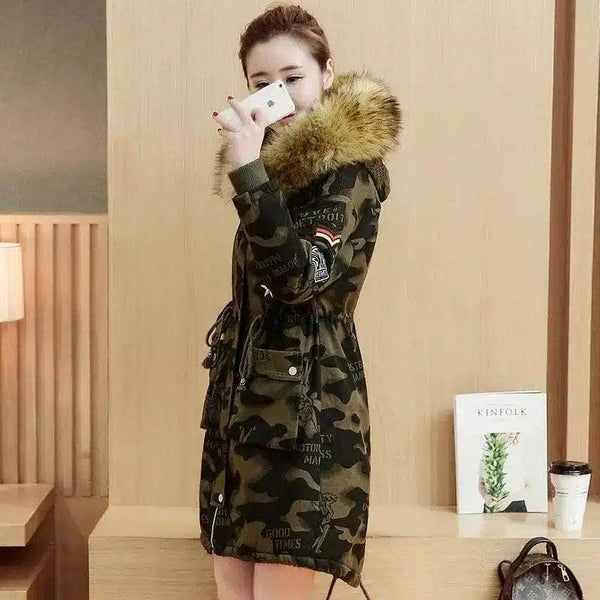 Kalınlaştırılmış pamuk dolgulu ceket, kadın saç yaka kışlık