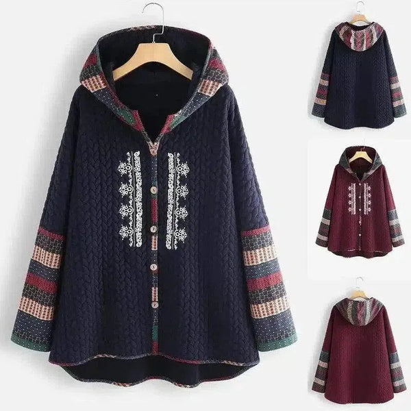 - Yaka veya omuz stili: Desenli iç astarlı kapüşonlu