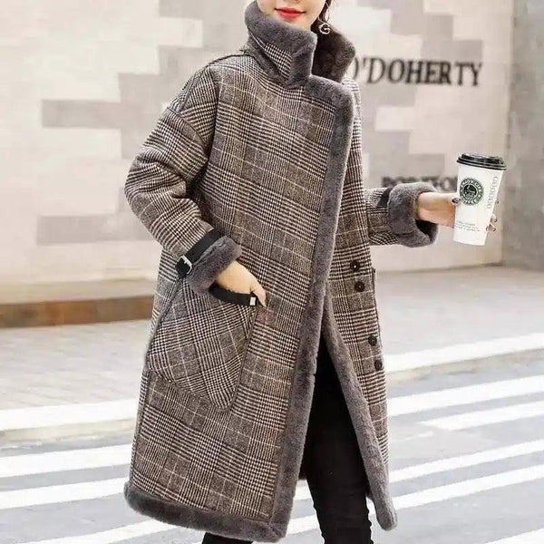 Kore mizacı artı kadife kalın orta uzunlukta yün palto