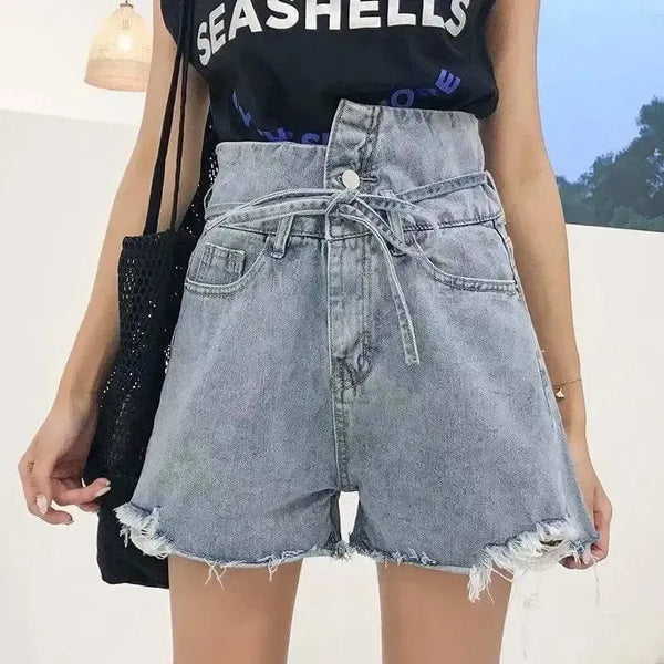 Düzensiz delikli kot pantolonun Kore versiyonu