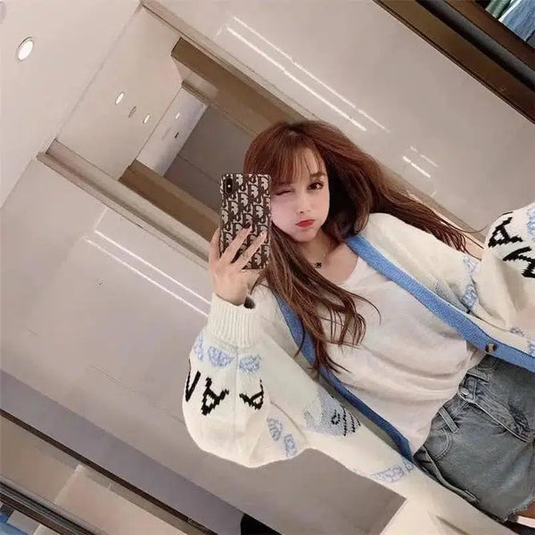 Uzun hırka ceket içinde küçük balina kazağı kadın
