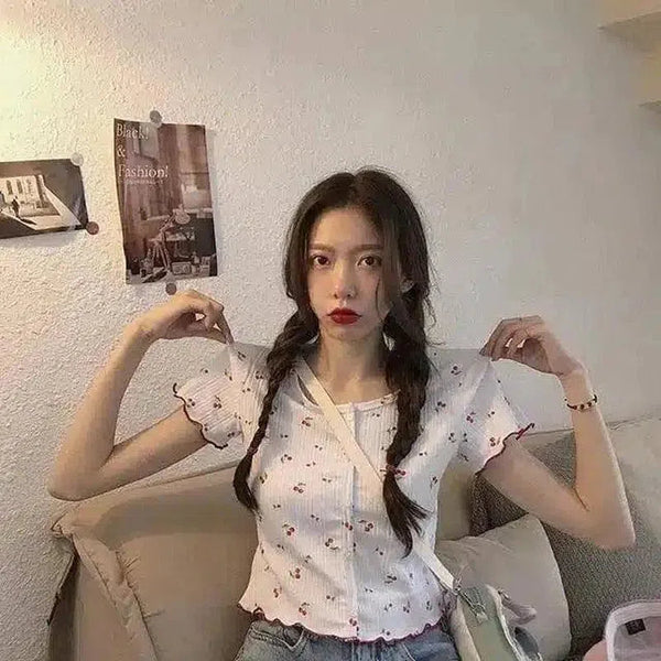 Kadın Çiçekli V Yaka Kısa Kollu Bluz