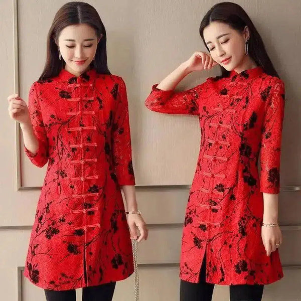 Geleneksel Çiçekli Kadın Cheongsam Elbise