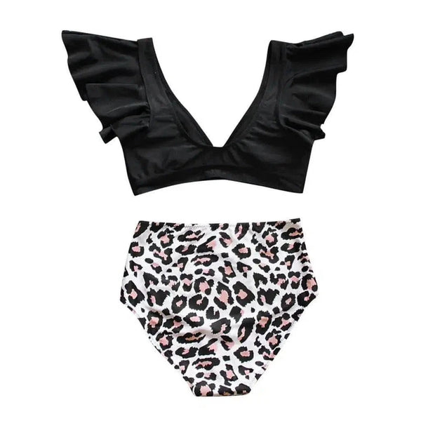 Leopar desenli mayo yırtmaçlı yüksek bel iki parça set