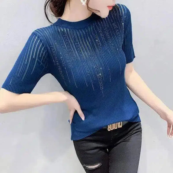 Kadın Nervürlü Örgü Kısa Kollu Üst