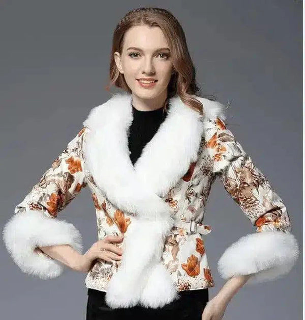 Kadınlar için Suni Kürk Yakalı Çiçekli Ceket