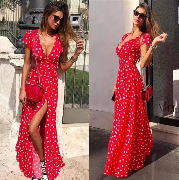 Kadın Dalga Noktası Kısa Kollu Bayan V Yaka Streç