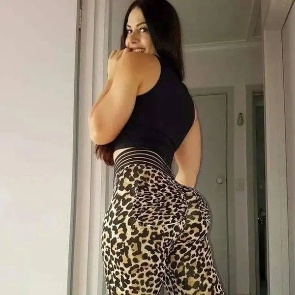 - Tasarım: Şık bir bel bandına sahip cesur leopar desenli tayt