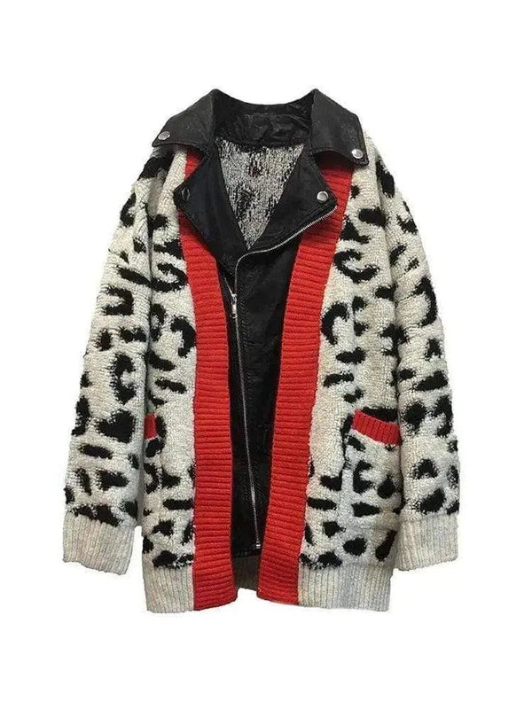 Leopar Desenli Suni Kürk ve Deri Ceket