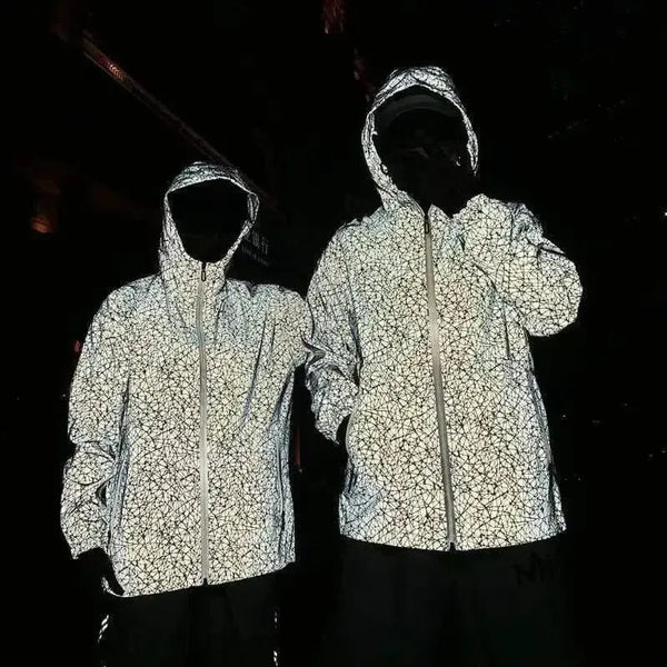 - Göz Alıcı Reflektif Malzeme: Bu ceketler, gece güvenliği ve göze çarpan sokak giyimi modası için mükemmel olan, ışık altında parlak bir şekilde parlayan yüksek görünürlüklü bir yansıtıcı malzeme ile üretilmiştir.