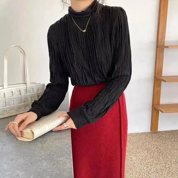 Bayan Pileli Balıkçı Yaka Uzun Kollu Üst
