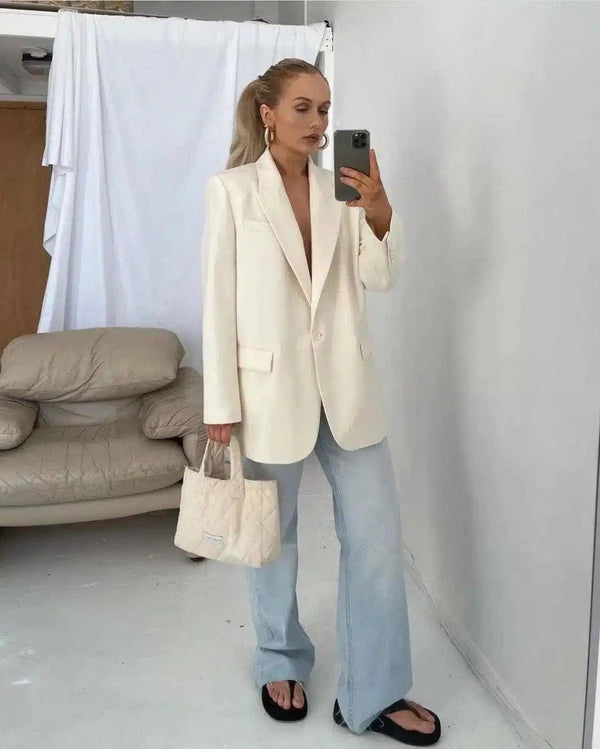 Bayan Özel Dikim Blazer Ceket ve Geniş Paçalı Kot Pantolon