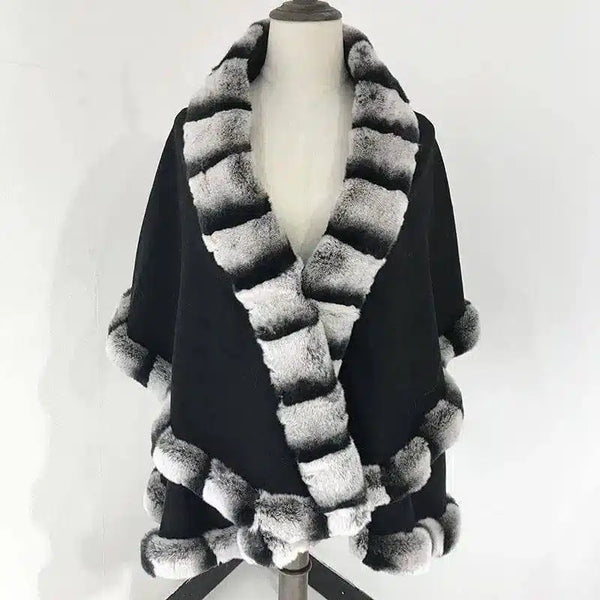 Şal Pelerin Tilki Kürkü Dikişli Kaşmir Kaban