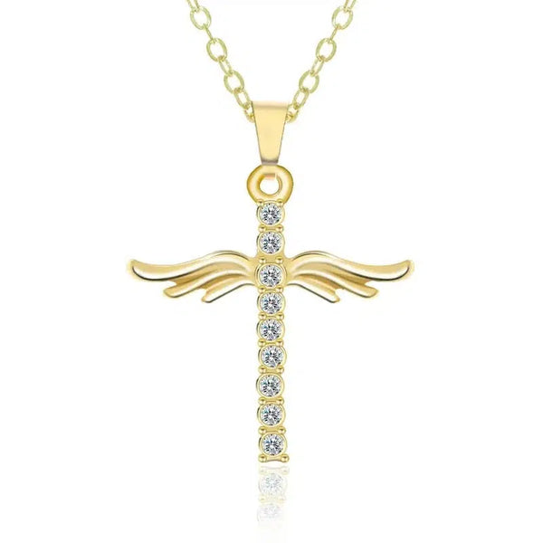 Basit Haç Pırlanta Melek Kanatları Kolye