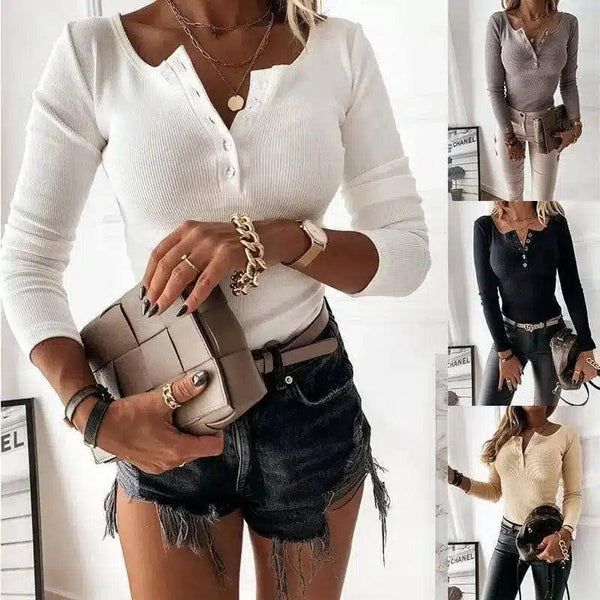 Bayan Günlük V Yaka Düğmeli Örgü Üst