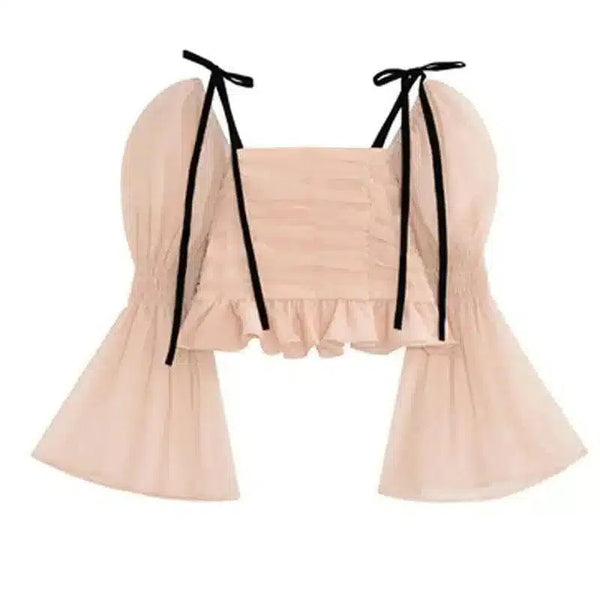 Çan Kollu Kravat Askılı Büzgülü Kırpık Üst