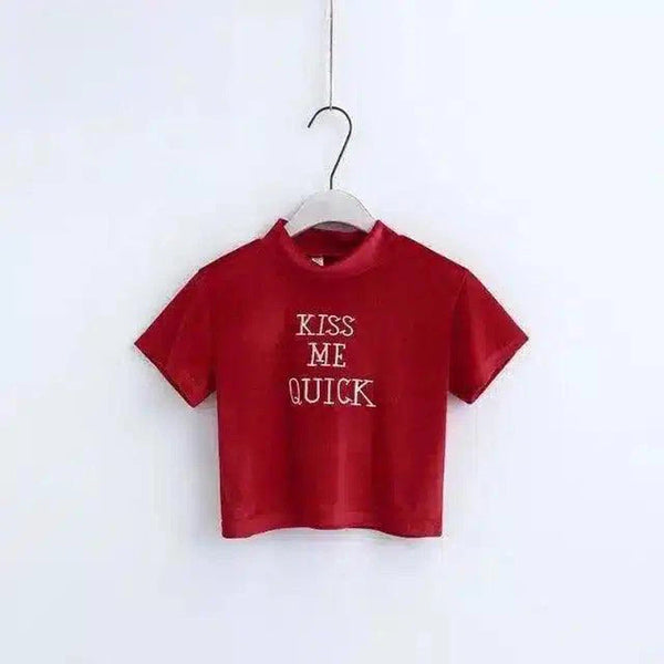 Gövdesi ve altı dar, yüksek yakalı, işlemeli tişört