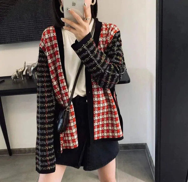 - Karmaşık Desen Tasarımı: Blazer ceket, kırmızı ve siyah renklerde klasik balıksırtı desenine sahiptir ve bir miktar ışıltı ve ihtişam için ince metalik ipliklerle serpiştirilmiştir.