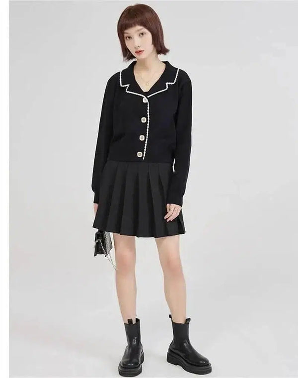 Temperament Xiaoxiang Siyah Örme Hırka Kadın Bol