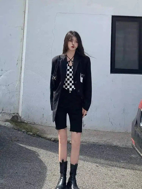 - Fit veya streç: Normal kesim blazer ceket; vücuda oturan şort