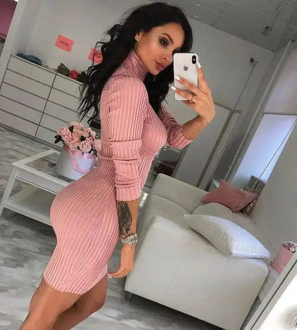 Ürün Açıklaması: Balıkçı Yaka İnce Uzun Kollu Elbise