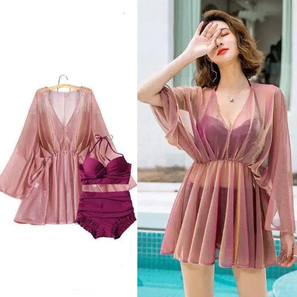 Üç Parçalı Mayo Kadın Bikini Bölmeli Örtü