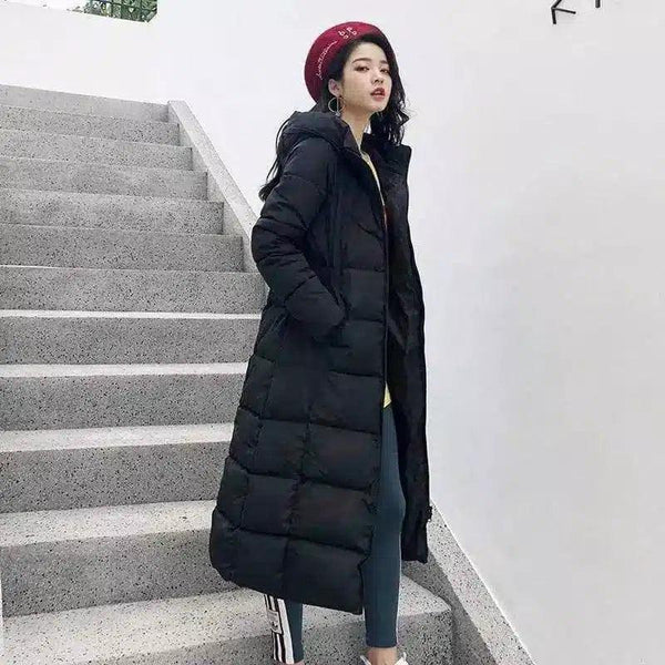Kadınlar için Kışlık Kapüşonlu Uzun Kuştüyü Ceket