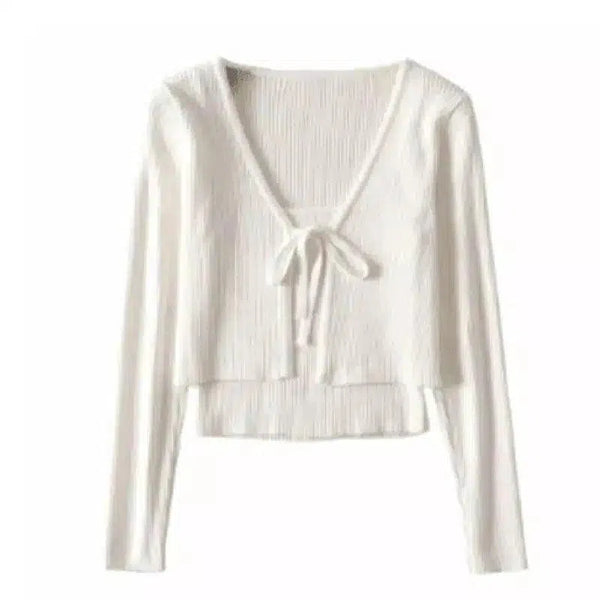 Kadın Önü Bağcıklı Ribana Crop Kazak