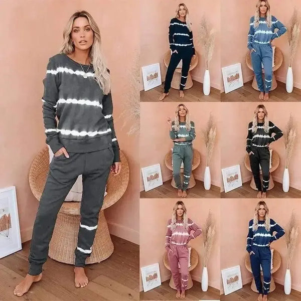 Uzun Kollu Pantolon Çift Çizgili Batik Degrade Pijama