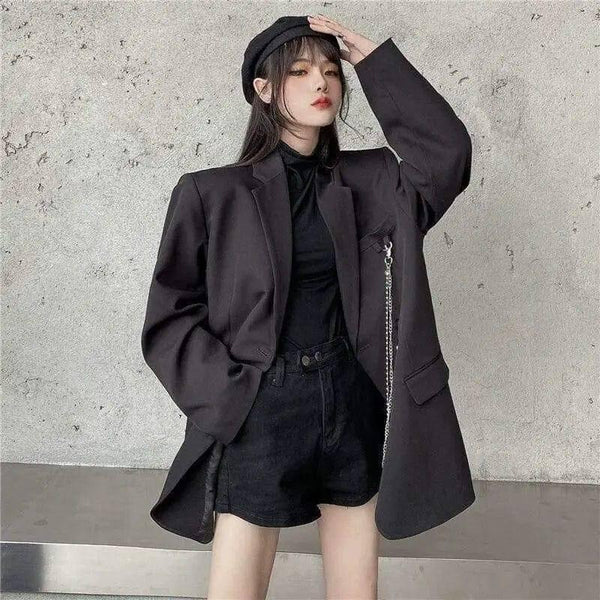 Beyaz Tam Takım Siyah Bol Günlük Sonbahar Takım Elbise