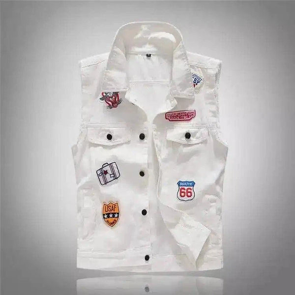 Beyaz Denim Yelek Denim Yelek Kişiye Özel Yama Denim Yelek
