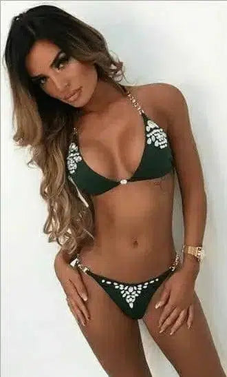 Kadın Glitter Rhinestone Bikini Seti Push Up Sütyen Yular