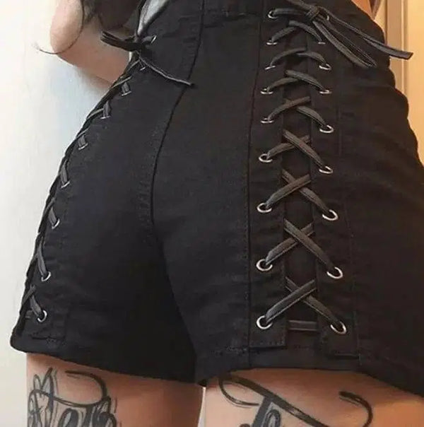 Kadın Katı Şort Criss Cross Bandaj REGULAR Yüksek Bel