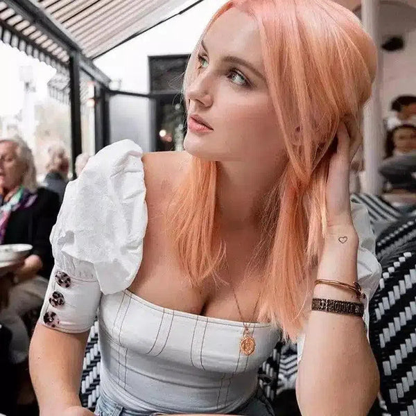 Beyaz Ekose Omuzları Açık Bluz - Zarif ve Feminen