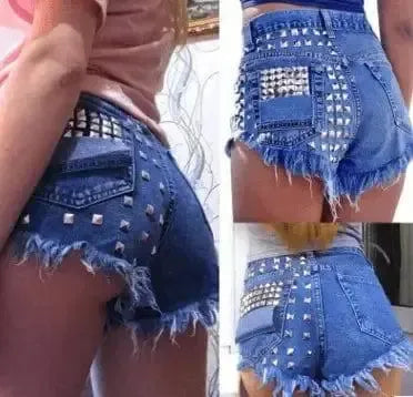 Kadın yırtık kot bol şort perçinli sıcak pantolon