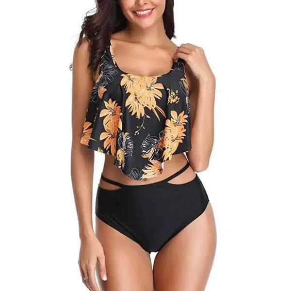 Kadın Askılı Retro Baskı Tek Parça Mayo