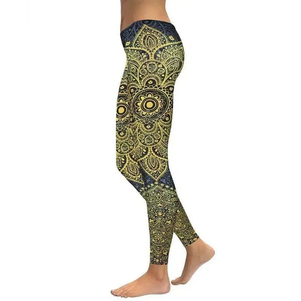 Sarı Altın Mandala Yoga/Egzersiz Taytı