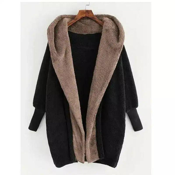 Renk Uyumlu Kapüşonlu Bol Hırka Ceket