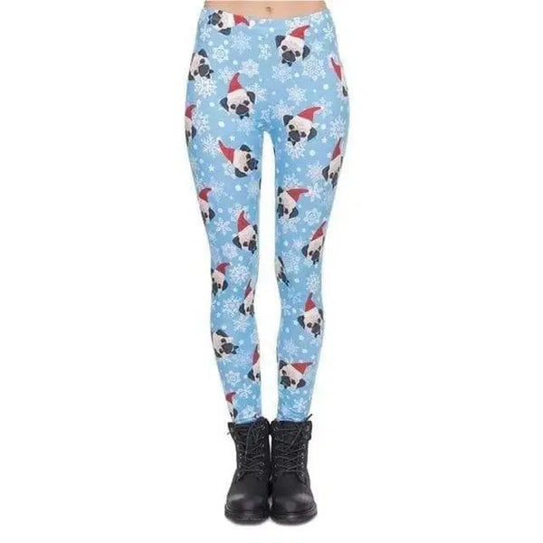 Zohra Yüksek Esneklikli Kadın Tayt Santa Pug Baskı Mavi