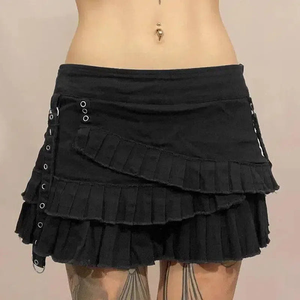 Metal Tokalı Düzensiz Pileli Denim Etek