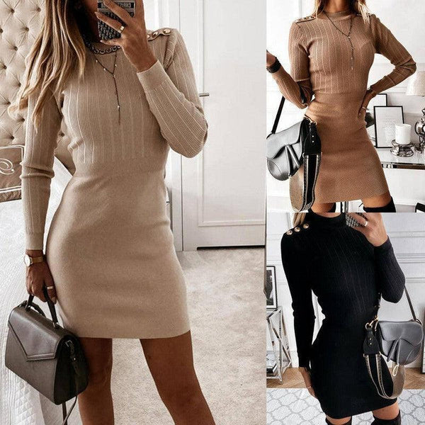 Kalçalı Örgü Kısa Etek Kadın Uzun Kollu Örgü Kazak