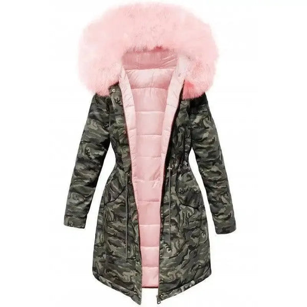 Peluş Kalın Kaban Gevşek Büyük Kürk Yaka Orta Boy Kamuflaj