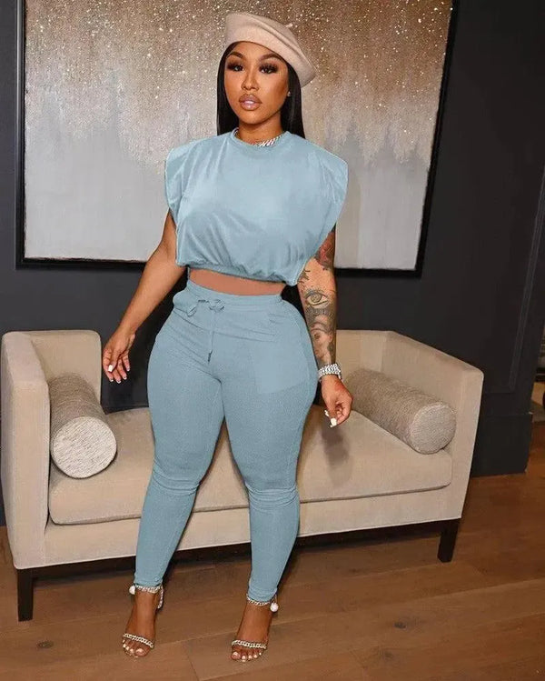 Saf Renk Dar Kolsuz Dolgulu Omuz Tişört İpli