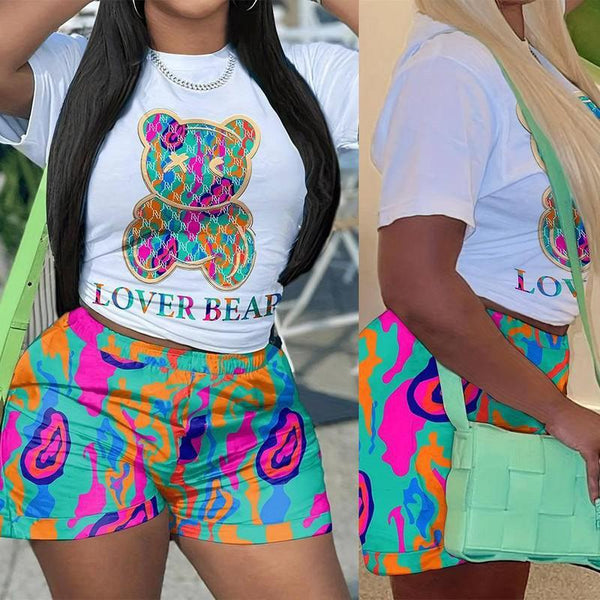 Ürün Açıklaması: Şiddetli Ayı Baskılı Kısa Kollu Takım Elbise