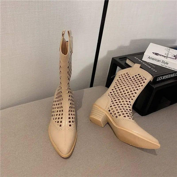 Sivri Batı Kovboy Botları Kadın İnce Hollow Şövalye Kalın