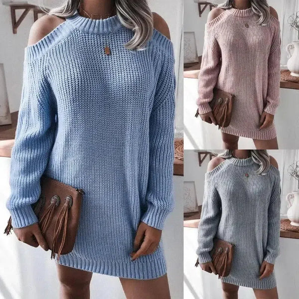 Triko Üniversite Kazakları Kadınlar İçin Kazak Uzun Mavi Gri