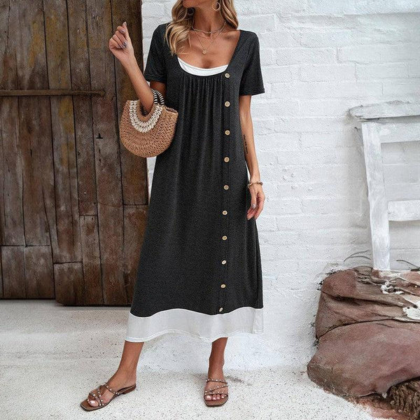 Kadın Modası Temperament Eğlence Kısa Kollu U Yaka