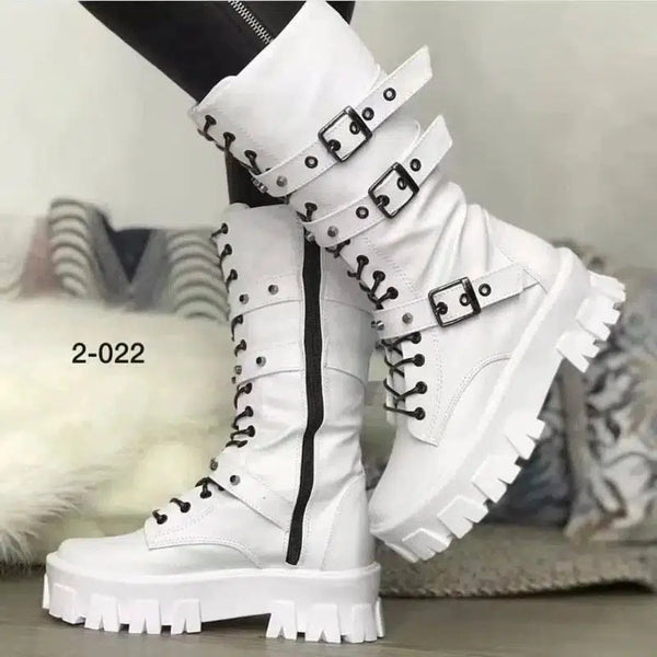 Kadın Martin Botları Bağcıklı Savaş Çizmesi Orta Buzağı Platformu
