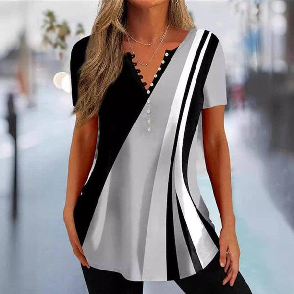 Yazlık Kadın Düğmeli Geometrik Desenli Günlük Giyim Üst