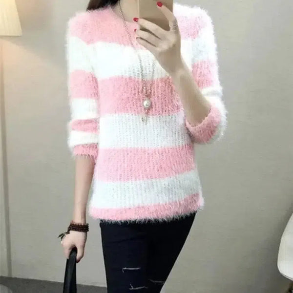 Kadın Kazak Triko Bol Yuvarlak Yaka Kazak Dipli